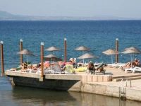 Если повезет (или дадите денег) - сможете расположиться на пирсе на лежаках. Но их там мало, не более 10.