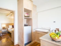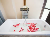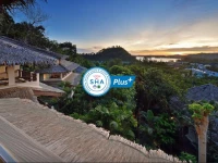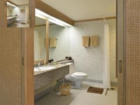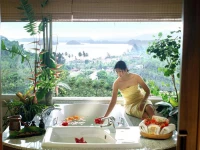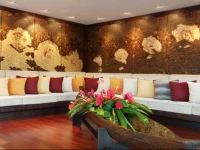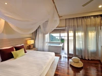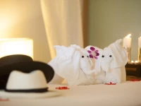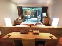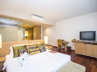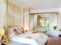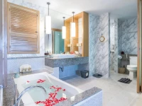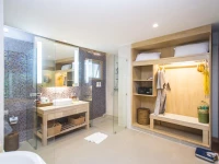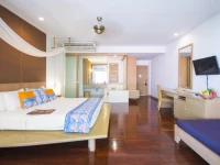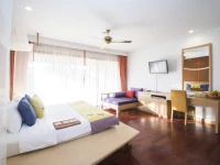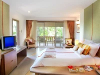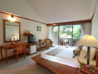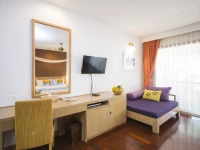 В номерах набор для чая и кофе,халаты, тапочки (тоненькие), пляжная сумка с циновкой и полотенцем - можно приобрести себе за 1000 батт,ванна и туалет за стеклянной дверью + ванна на балконе. Номер маленький, кровать маленькая. На