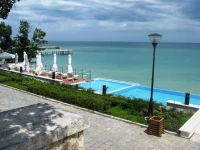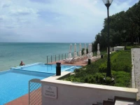 Оазис... Источник для жаждущих и пристанище для уставших. Он всегда встречает вас вниманием и провожает исполненных жизненных сил... Таковым является и новый отель Oasis (Оазис) в Клубе отдыха „Ривьера” – цвета его теплые, солнечные, они исполнены обещаний и волнующих мгновений... Формы передают движение, они как шаги на песке – видимые, но неразгаданные. Атмосфера – игра с прошлым, в котором кроются непознанные миры...Бутик отель „Оазис” предлагает наилучшее сочетание с природой – он расположен одновременно на самом берегу моря и среди густой растительности векового парка. Рядом с ним располагаются отель „Ривьера Бич”, теннис корты, Рыбный ресторан, Барбекю „Аркада".