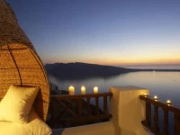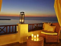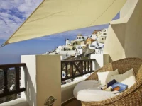 Отель предлагает своим постояльцам шикарные номера с видом на Эгейское море и остров Тирасия.