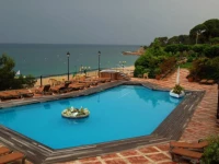 Пляжный отель, находиться на первой линии. Построен в 1956 году. Стоит чуть - чуть на возвышенности, но без горок и пригорков. Сделана реновация. Территория не большая, но уютная. Все расположено по линии моря. Отель в классическом средневековом стиле. Кругом антиквариат, ощущение, что ты находишься не в отеле, а в замке. Wi-Fi в лобби (бесплатно). 2 ресторана (в летний сезон открытые террасы). Но
