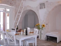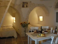 В трулли, расположенных в центре города, завтрак предлагается в ресторане, который находится в нескольких минутах ходьбы, или подается в номер. В остальных домиках завтрак не предоставляется или по запросу сервируется в номерах.