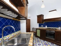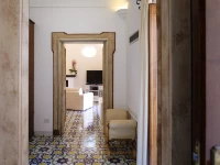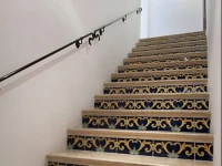 У входа к вилле есть изящный патио, окруженный цветами и зеленью. Этажи здания соединены между собой ступеньками из мрамора и майолики.