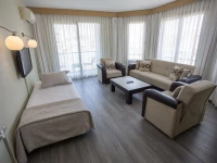 Для проживания гостей предлагаются 36 номеров, оборудованных кондиционером, ТВ, ванной комнатой и балконом.