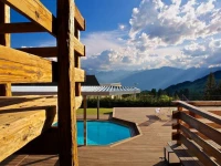 Отель предлагает своим постояльцам комфортабельные апартаменты в деревенском стиле, из которых открывается потрясающий вид на альпийские вершины и широкую долину Роны.