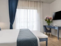 Мы с мужем и дочкой отдыхали в этом отеле в августе 2012г. Приехали, но на рецепшене выяснилось, что свободного стандартного номера, который мы оплачивали, в наличии нет. Мальчик, кстати рускоговорящий, очень извинялся и через полчаса нас поселили в номер с двумя комнатами и большой душевой кабиной с ванной-джакузи. Отель не большой, хороший чистенький. Кровати застилают и меняют полотенца два раз