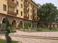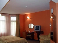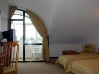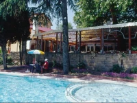 Что же... Есть грех. Хотели сэкономить на этот раз. Все вокруг говорят, что квартиры там покупают. Съездим, посмотрим, что за Болгария такая. Выбрали это место. Вроде курорт- для здоровья полезно. Народу, небось поменьше, чем на Золотых песках. Бассейн какой=то с минеральной водой. И отельчик ничего себе так. Симпатичненький. Поселили нас в мансардный этаж. Просили поменять, но без успеха. Ладно,