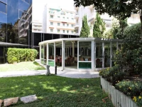 Футуристическая архитектура этого огромного отеля, две бронзовые статуи Венеры, контрастируют с интерьером, выполненным в стиле Деко.