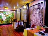 Отель-корабль Bai Tu Long Junks & White Dolphin Cruises (Бай Ту Лонг Джанкс энд Уайт Долфин Круизес) 3* предлагает гостям уникальный опыт проживания в каюте на борту деревянной лодки. В его оформлении тонко переплетается современный стиль с традиционными вьетнамскими мотивами.