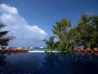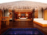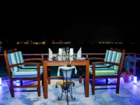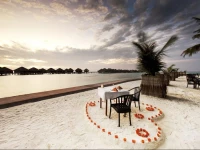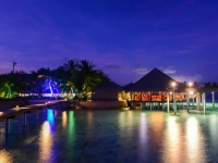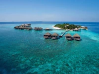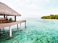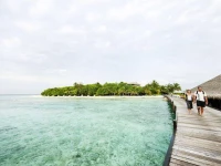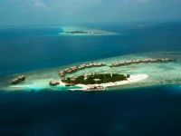 Второй отель, в котором мы запланировали побывать – Adaaran Prestige Vadoo. Он находится совсем рядом с Мале и аэропортом. Это, впрочем, абсолютно не напрягает. Самолеты в глаза не бросаются, а столица вид горизонта не портит. Наоборот - с расстояния в 7 км пятнышко столичного острова смотрится интересно. Сам остров
