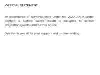 Отель Oxford Suites Makati (Оксфорд Свитс Макати) 3* находится в самом сердце делового Макати, в 30 минутах езды от от международного аэропорта Бениньо Акино и в нескольких минутах ходьбы от торгового центра. Недалеко от отеля находится множество дизайнерских бутиков, The Alaya Museum, historical museum, рестораны, ночные клубы.