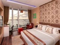 Номер уютно обставлен и оснащён необходимым, чтобы отдохнуть после долгого и насыщенного дня. Имеются телевизор, мини-бар и тапочки. Перечисленные услуги есть не во всех номерах.