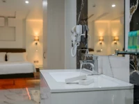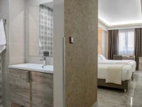 Номер уютно обставлен и оснащён необходимым, чтобы отдохнуть после долгого и насыщенного дня. Имеются будильник, телевизор, мини-бар, халат и тапочки. Перечисленные услуги есть не во всех номерах.