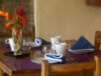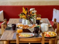 Завтраки на террасах вилл сервируются каждый день. Ресторан находится на территории пляжного клуба.