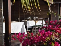 Открытый ресторан расположен в тропическом саду отеля. Здесь гости могут отведать изысканные блюда на свежем воздухе под соломенной крышей. С утра гости могут насладиться континентальным или английским завтраком и полюбоваться видом на лагуну.