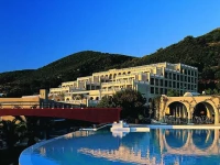 Этот очаровательный и элегантный отель напоминает об арабско-андалузском архитектурном стиле, и весь проникнут атмосферой романтической роскоши, великолепно вписывающейся в чудесную природу Корфу.