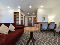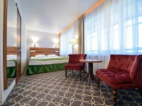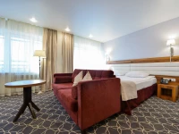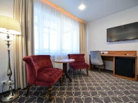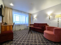Двухкомнатный номер категории «Люкс» идеально подойдет для деловых гостей, ценящих комфорт и возможность организовать рабочее место в отдельной комнате.