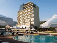 Отель Rapo's Resort Hotel 5* расположен в Албании, на побережье Ионического моря, в 1,5 км от центра города Химара. Международный аэропорт Тирана находится на расстоянии 240 км, рядом проходит автомагистраль SH8. Курорт привлекает гостей хорошими пляжами, чистым морем, красивыми видами и историческими достопримечательностями. Гости отеля могут побывать в старинном городе Фойнике, съездить на экскурсию в город Саранда, посетить национальный парк Бутринт, увидеть уникальное природное явление Голубой Глаз - подземный источник, вода которого имеет насыщенный лазурный цвет, посетить руины города Бутринт и замок Лекурес, построенный в XVI веке. Отель расположен на территории большого сада с цитрусовыми и оливковыми деревьями, в нескольких шагах от пляжа. Гостям предлагают комфортные номера, хороший сервис, возможность освежиться в бассейне и отличный отдых на море.