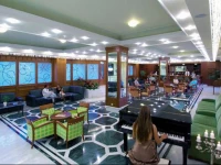 MYTHOS Пиано бар с террасой, которая открывает вид на пышные сады, лазурный бассейн и берег моря.