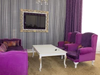 Чудесный трехкомнатный номер повышенной комфортности для деловых людей. Спальная комната с широкой кроватью, гостиная с диваном и телевизором, а также комната для переговоров.