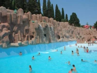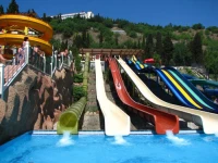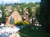 Аквапарк комплекса Миндальная роща в Алуште — настоящее чудо ландшафтного дизайна. Люди, создававшие его, вложили свою душу в каждую частичку рукотворных скал, каждый изгиб мощенных тропинок. Пышные кроны деревьев, буйство экзотических трав создают потрясающее ощущение слияния с природой, с загадочным миром.