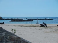 Собственный пляж отеля с камнями менее удобный, чем городской песчаный пляж Тру-о-Биш, который находится рядом.