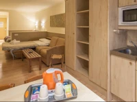 Этот спокойный, светлый и тихий апартотель мы рекомендуем настоящим горнолыжникам. Красивые интерьеры, прекрасная атмосфера комфорта и уюта, доброжелательность и внимание персонала - все здесь располагает к замечательному отдыху. Просторные номера особенно удобны для размещения семей с детьми и супружеских пар, а для больших компаний отель может предложить сообщающиеся апартаменты. все номера имеют балкон, с которого открывается очень красивый панорамный вид на горы.