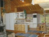 В коттедже 3 спальни с двумя кроватями каждая, на чердаке две односпальных кровати, одна двуспальная и два матраца. Полностью оборудованная кухня, гостиная с камином ,сауна.