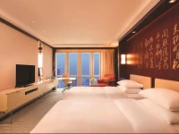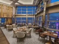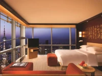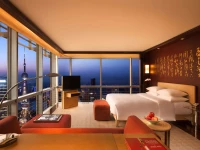 Сам отель занимает этажи с 53 по 88 в небоскребе Lin Mao. Удивляет не только бассейном на 57 этаже, но и видом из окна 84 этажа. Это самый высокий отель в мире. Радуют понорамные окна, и виды на вечерний Шанхай из ресторана. Представлена итальянская, японская, китайская, европе