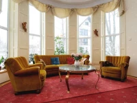 Инфраструктура: салон с камином и роялем, помещение для хранения лыж. На территории гостиницы большой сад с местом для разведения костра.