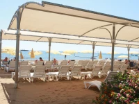 Сам отель небольшой,очень чистенький, недавно сделан ремонт, все номера с видом на море,в номере санузел с душем, фен,жидкое мыло. Телевизор,(1-й канал и Россия) холодильника нет.
