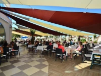 1.РЕСТОРАНА В ОТЕЛЕ НЕТ. Вообще нет. Питаться люди ходят в соседний отель, который расположен через дорогу и потом вдодь дороги еще метров 100.