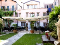 Отель занимает здание венецианского особняка, построенного в XVI веке. Фасад отеля выходит на канал Сан Себастьян, с другой стороны расположен красивый сад с фонтаном, украшенный античными скульптурами.