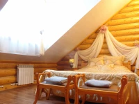 Полулюкс в "Теремах" - это не просто номер, но совершенно особая атмосфера русской теплоты и гостеприимства. Большое мансардное окно, открывает дивный вид на красоты усадьбы - на сосновый бор и пруды, на зеленые поляны и разбросанные на них деревянные дома, будто только что сошедшие со страницы русской сказки!