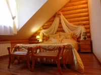 Скромно расположившийся на мансардном этаже гостиничного комплекса, наш номер полулюкс встретит вас по-русски душевно. Массивными, словно вековыми бревенчатыми стенами, теплыми деревянными полами и уютной скошенной крышей. Этот номер предназначен для трехместного размещения.