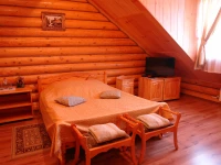 Просторный с настоящим размахом по-русски, наш четырехместный номер в гостинице уверенно занял свою позицию в мансардном этаже. В "Теремах", как и в любой уважающей себя гостинице, люксовый номер занимает особое положение.