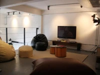 общий зал с телевизором, а также в распоряжении гостей кладовая с холодильником