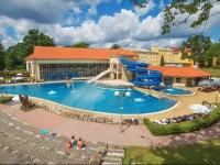 Отель расположен в середине парка в 5 минутах од центра города. Здания соединены коридором с аквацентром и с санаторием "Цисарске Лазне", где осуществляется лечение.