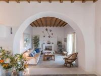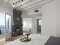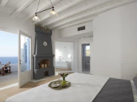 This virtually private villa sits right on the shoreline, in the prestigious neighborhood of Poulion the island's Kanalia district. Spread over three floors across a total area of 145 square meters (1560 square feet), the villa will entice you with its light, minimalist Greek-island décor and understated luxury.
