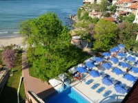 Отель хороший.По меркам Созополя 5ка :)) Есть бассейн,и даже детский,только детский всегда в тени поэтому вода там прохладнее.У бассейна лежаки и зонтики бесплатные.Кухни ужасная только в отеле.В отеле есть интернет,кидс клаб очень хороший,отличный спа-центр,бильярд,30 метров до"детского" пляжа.Номера надо брать с видом на море,другая сторона выходит на оживленную улицу на которой очень шумно ночь