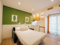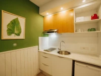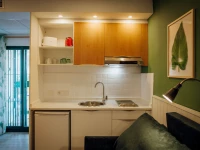 Номера оборудованы скромно, но в них есть всё необходимое: собственная ванная комната, спальня, обеденная зона, мини-кухня, холодильник, плита. В отеле есть открытый бассейн и детская площадка.