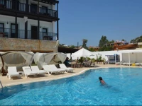 расположен в 43 км от аэропорта и в 4 км от центра г. Бодрум, в 50 м от берега моря. Отель состоит из восьми 2-х этажных корпусов.