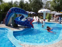 Отдыхали с дочкой (5лет)в июле 2006г.Не понравилось.Очень скучно,анимации никакой,иногда по вечерам включали музыку,но практически никто не танцевал.Были представления приезжих артистов,но за доп.плату и неинтересные.Жили в летнем домике.Обстановка как в "советских" санаториях.В душевой нет даже поддона и стока для воды,после принятия душа вся ванная комната залита водой сантиметров на 5 и потом е