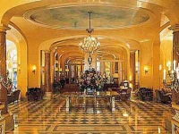 Изысканная обстановка холла: мраморные полы, столик и гобелены, - все здесь оформлено в величественном стиле. Просторные помещения изысканно декорированы.
