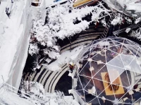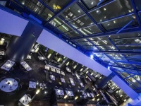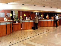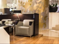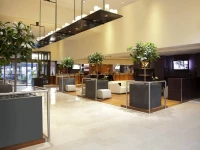 Лобби большого размера, просторное с высокими потолками и ярким освещением.
