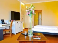 Превосходный ресторан приглашает отведать изысканные блюда международной кухни, включая французские блюда, блюда средиземноморской кухни и чешские блюда, а также широкий выбор вин со всего мира. Желающие могут насладиться трапезой на террасе в саду.