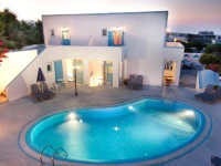 Отель Villa Pelekanos 3* расположен в Греции, на острове Санторини, в деревне Картерадос, в 10 минутах езды от аэропорта, на берегу Эгейского моря. Отель находится в тихом месте, в 1 км от столицы острова города Тира, в нескольких шагах от центра с магазинами, барами и ресторанами. Пляжи находятся в 20 минутах езды от отеля.