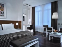 Номера отеля декорированы в современном итальянском стиле с элементами авангардизама.