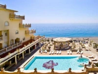 Расположен на 1-й береговой линии. Пляж каменистый. Шезлонги, зонтики на пляже платные (14 ? за 1 зонт и 2 шезлонга). На ресепшн, назвав номер своей комнаты, можно получить полотенца и квиток, по которому смотрите