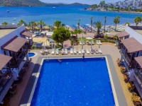 Была там с 2 по 9 июля 2006 г. Самое большое достоинство этого отеля- лучший пляж в Бодруме. Для меня это- песчаный пляж. Только из-за этого критерия я выбрала этот отель. Ну, и плюс ко всему- близкое расположение от центра Бодрума, всего 6 км. Питание можно назвать скорее полный пансион, чем all incl.Кормят очень и очень средненько. Но нам хватало. Домики весьма симпатичные, но номера староватые